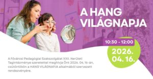 A Fővárosi Pedagógiai Szakszolgálat XXII. Kerületi Tagintézménye szeretettel meghívja Önt 2026. 04. 16-án, csütörtökön a HANG VILÁGNAPJA alkalmából szervezett rendezvényére. Időpont: 2026. 04. 16., csütörtök 10:30-12:00 óra között Helyszín:…Tovább...