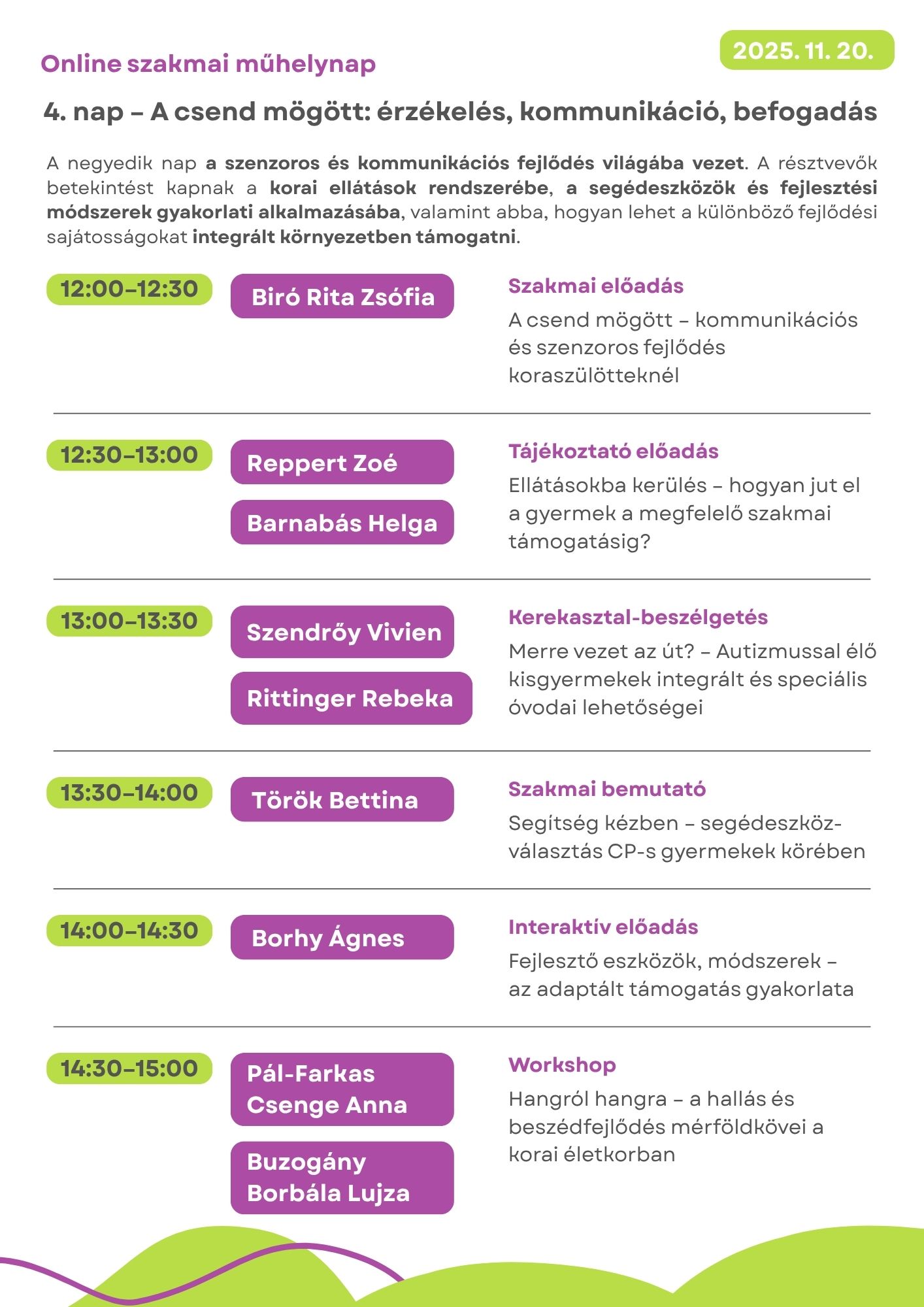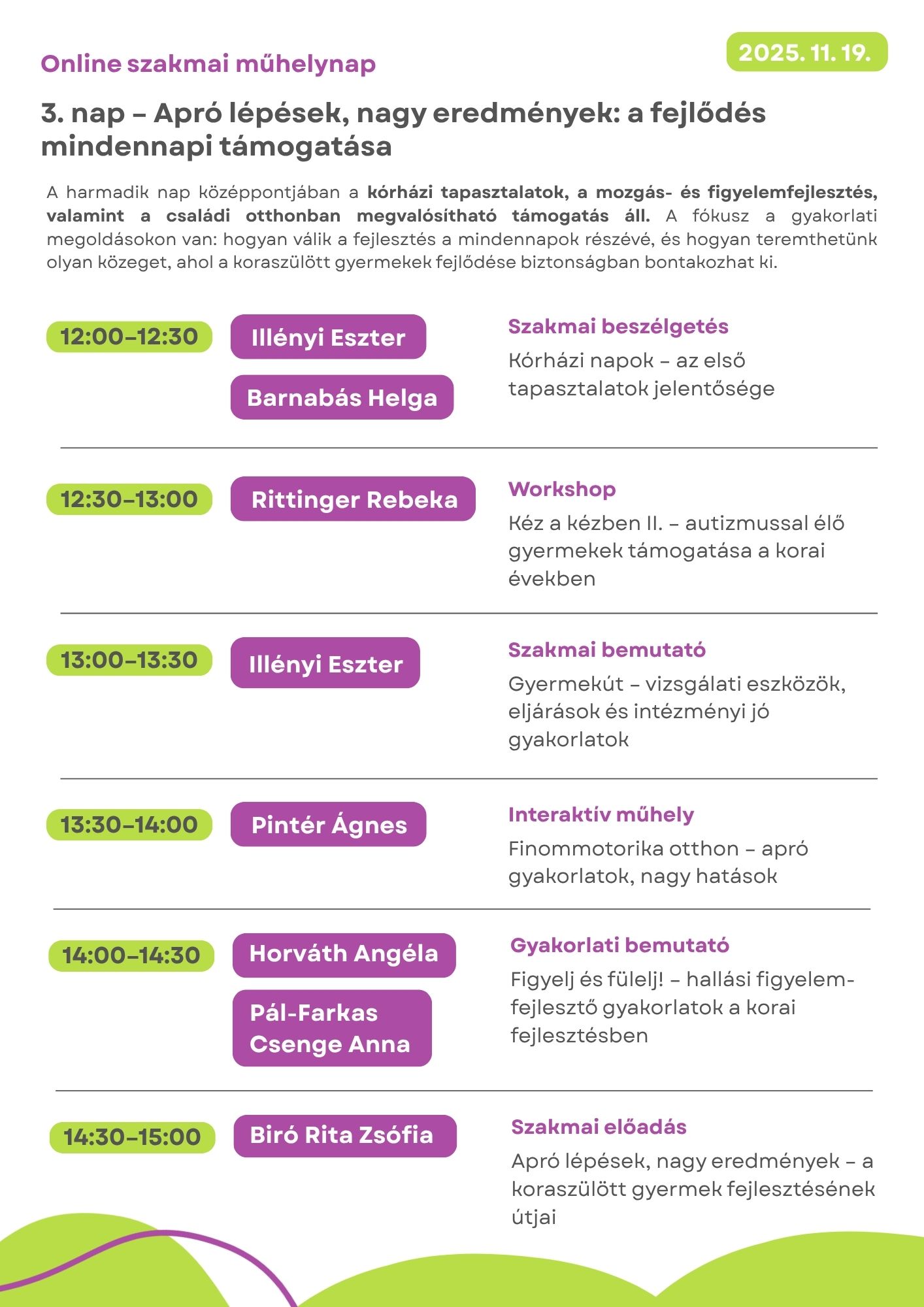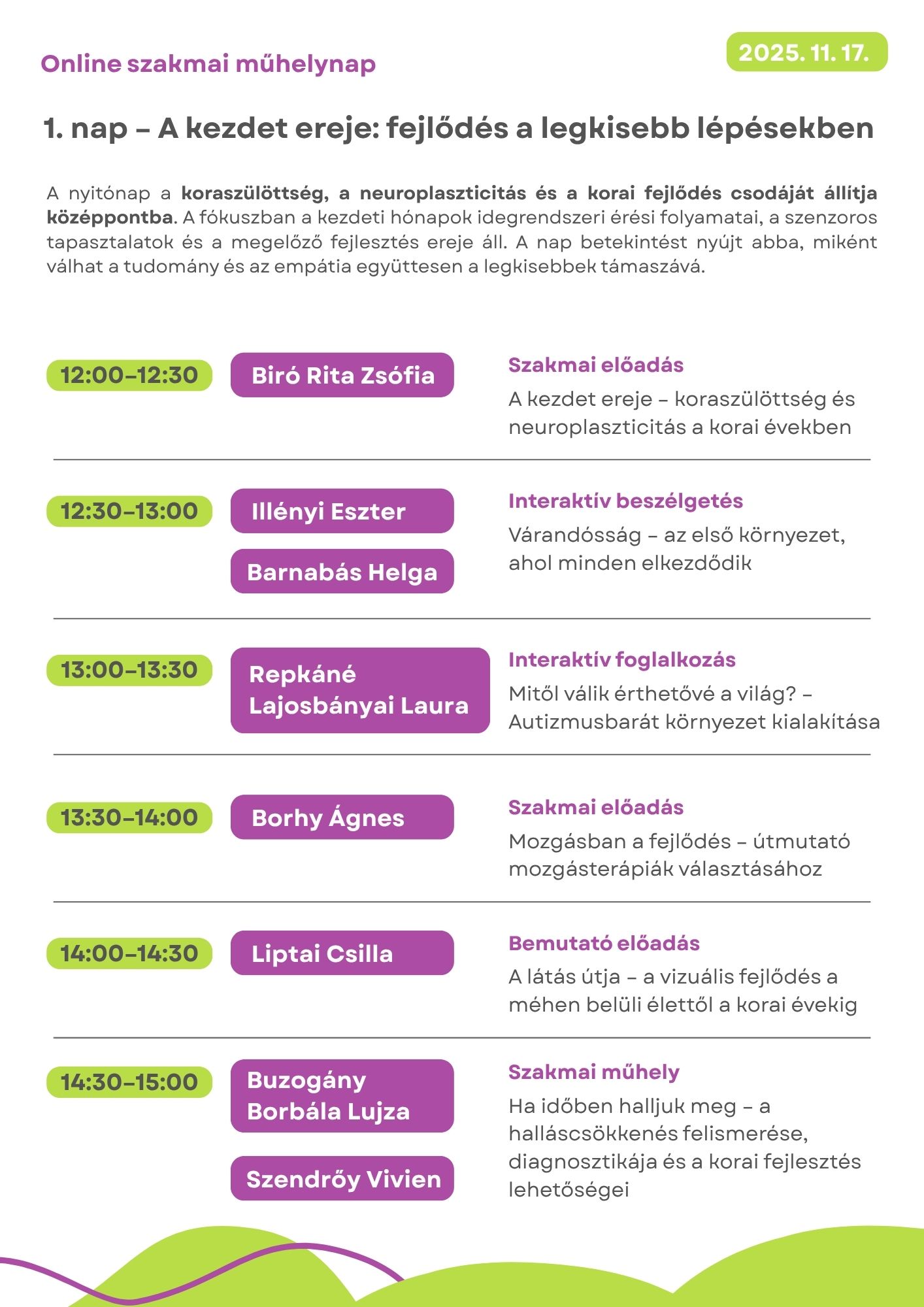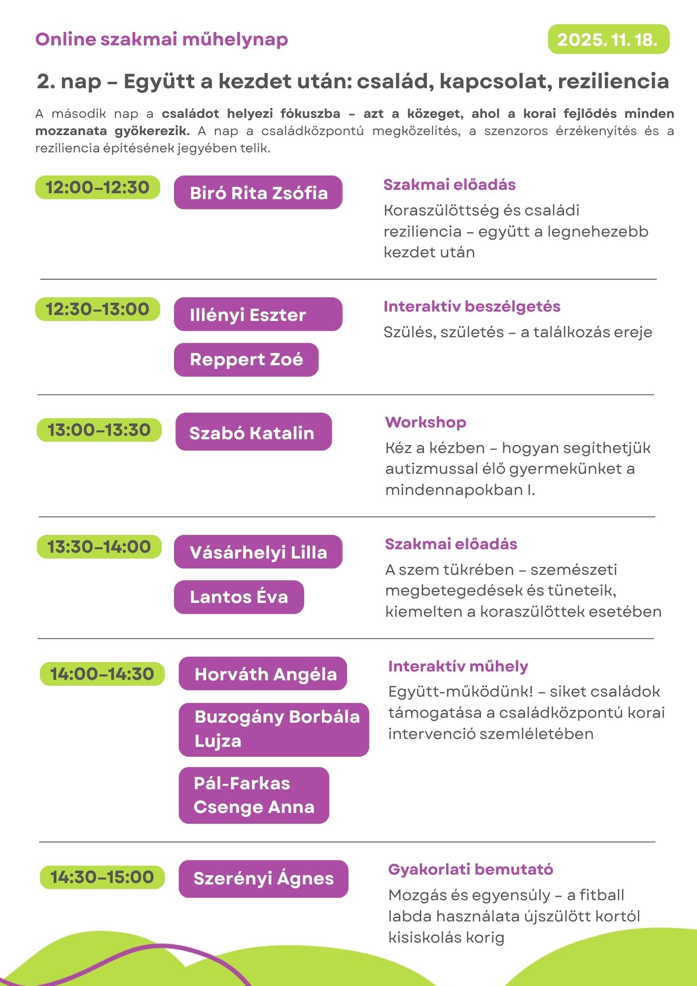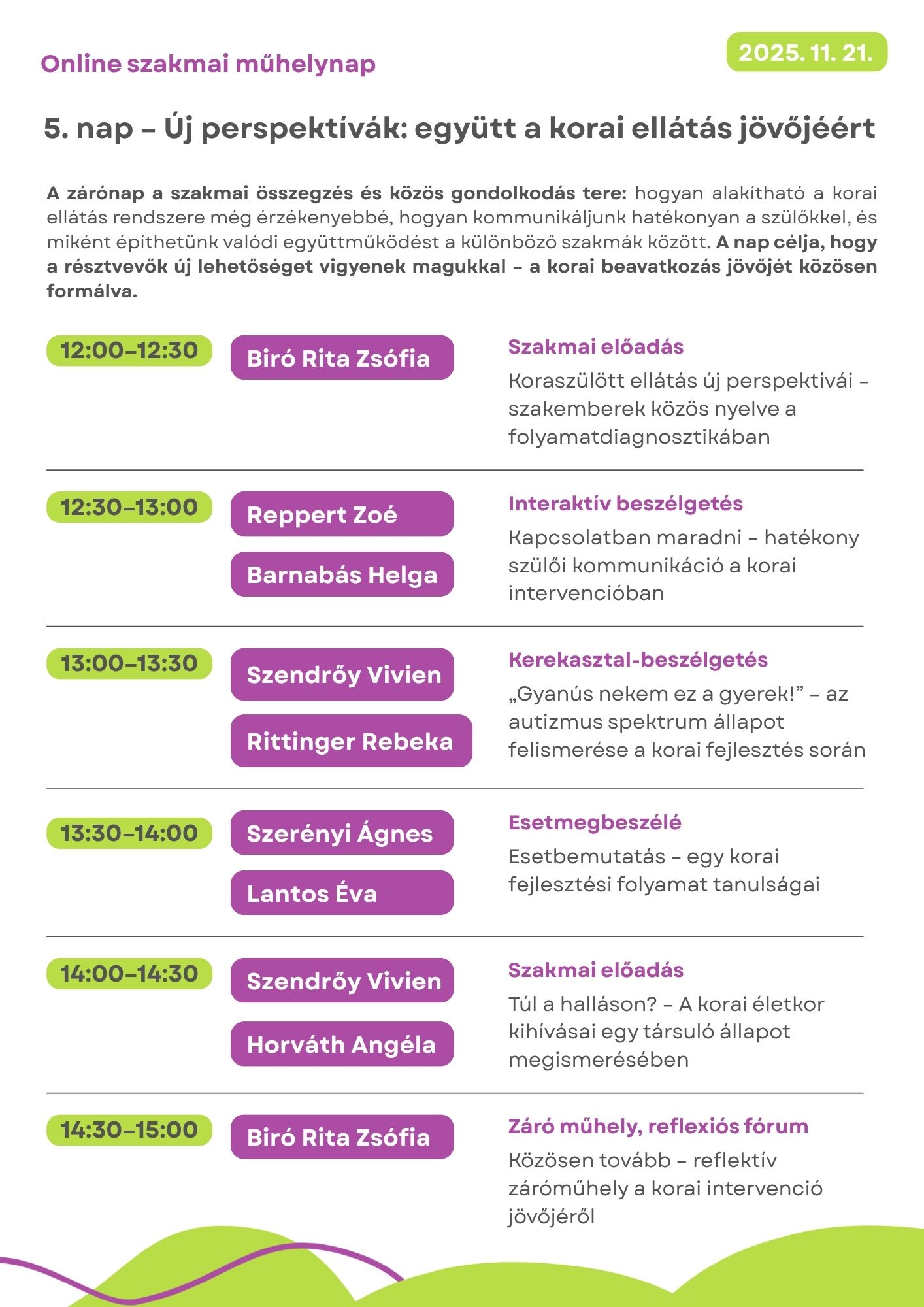A programsorozat célja, hogy párbeszédet és tudásmegosztást teremtsen a korai életszakasz támogatásában részt vevő szakemberek között – a neonatológustól a gyógypedagóguson át a kisgyermeknevelőig.