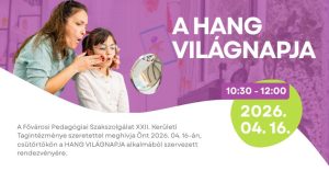 A Fővárosi Pedagógiai Szakszolgálat XXII. Kerületi Tagintézménye szeretettel meghívja Önt 2026. 04. 16-án, csütörtökön a HANG VILÁGNAPJA alkalmából szervezett rendezvényére.